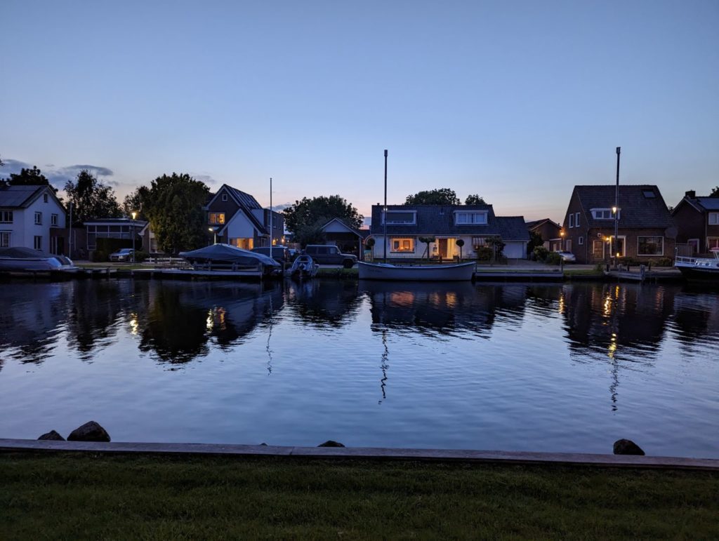 10時過ぎでも全然明るい、そしていわゆるブルーモーメントという感じの空と、静かな水面が本当に綺麗。みんなボート持ってるみたいだし、本当に豊かな生活をしているなぁ。