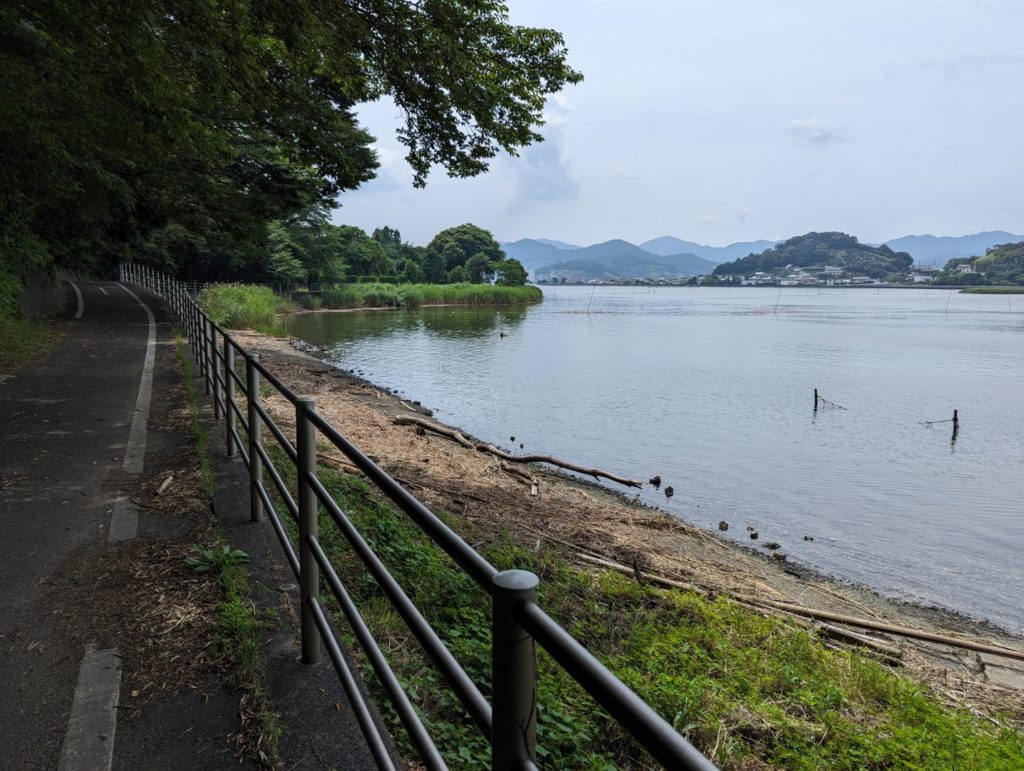 浜名湖の北西部には、猪鼻湖という湖があって(多分、大部分の人はそれも含めて浜名湖と思っていると思うけど)、それと浜名湖に挟まれた半島のような部分の湖岸を走ってみました。
