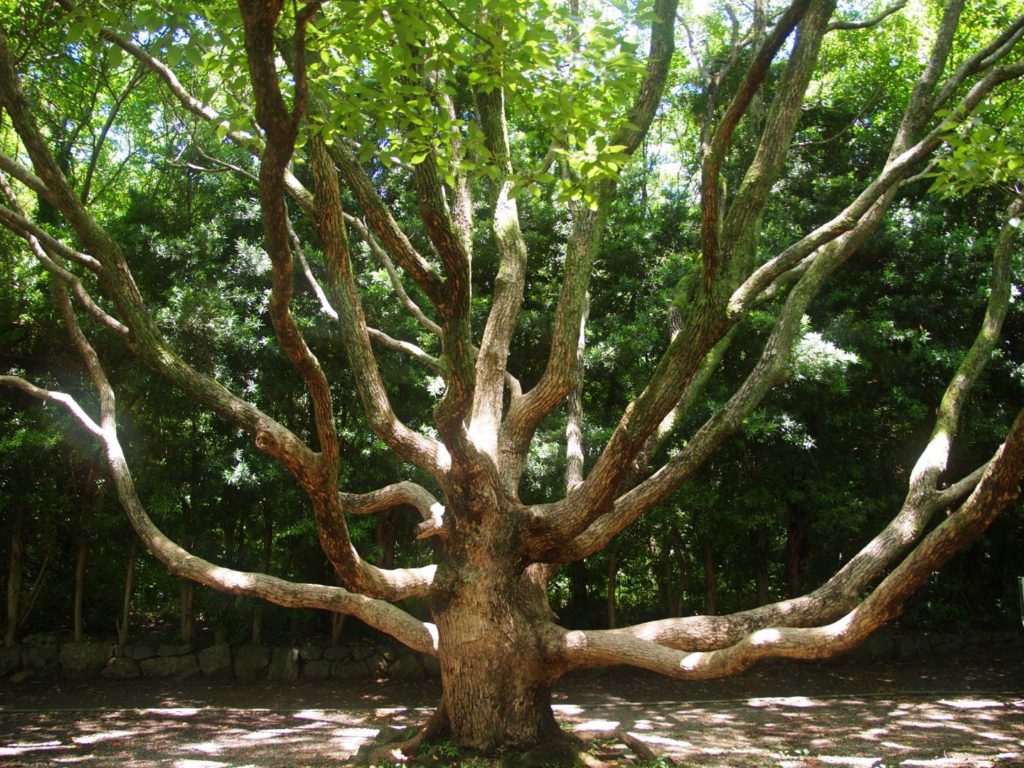 駐車場までは、住宅街といった雰囲気が続くので本当にこんな場所に湿原があるのかな?と半信半疑だったのだけど、駐車場に車を止めて案内に従って歩いていくと、いきなりこんな摩訶不思議な形の木が現れるし緑深い森の中に入っていく感じで、そのギャップに結構驚く。