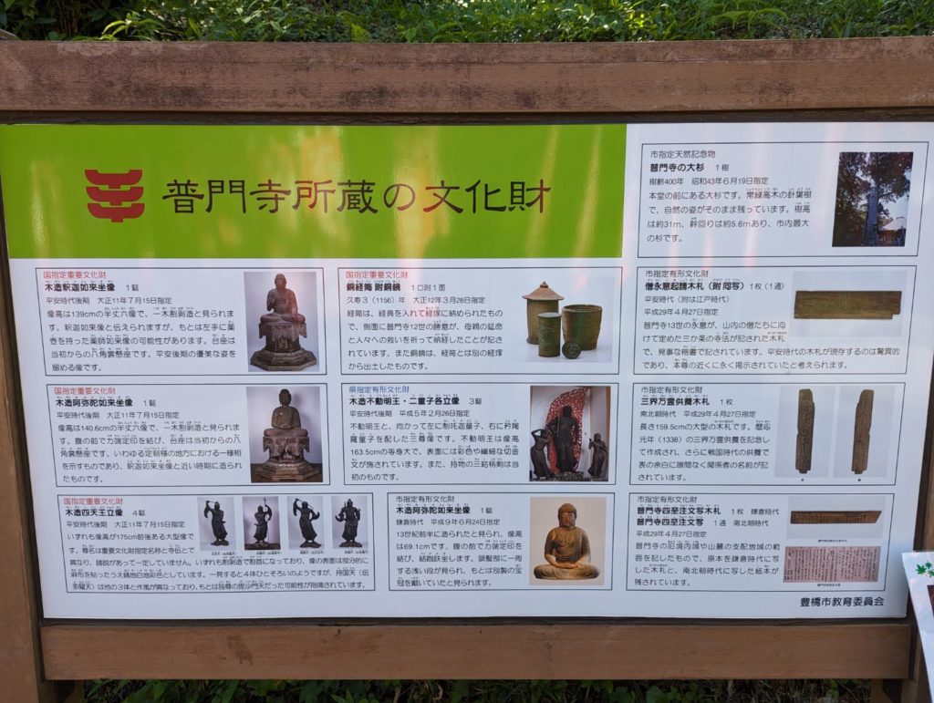 ハイキングでは行き着けなかったけど、結局駐車場に戻ってあらためて車を走らせて普門寺へ。というのも、ここにあるように国指定の重要文化財をいくつも所蔵しているのに興味を持ったから。でも、結局それらは公開されておらず、何も見ることができずというオチに…