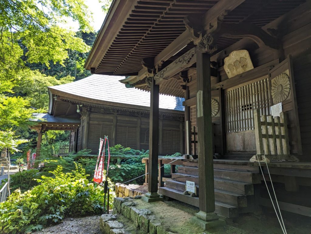地図を見ていると、この湿原の奥から登山道が伸びていてちょっとしたハイキングが楽しめそうというのと、その先には国の重要文化財を所蔵する普門寺という寺があるようなので、そこまでの往復してみようと。この日はとにかく暑かったので、そこまでの急登というわけでは無いものの、なかなかに体力を削られるハイキングに。