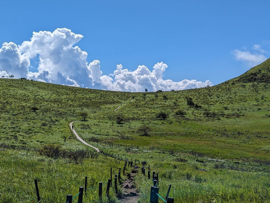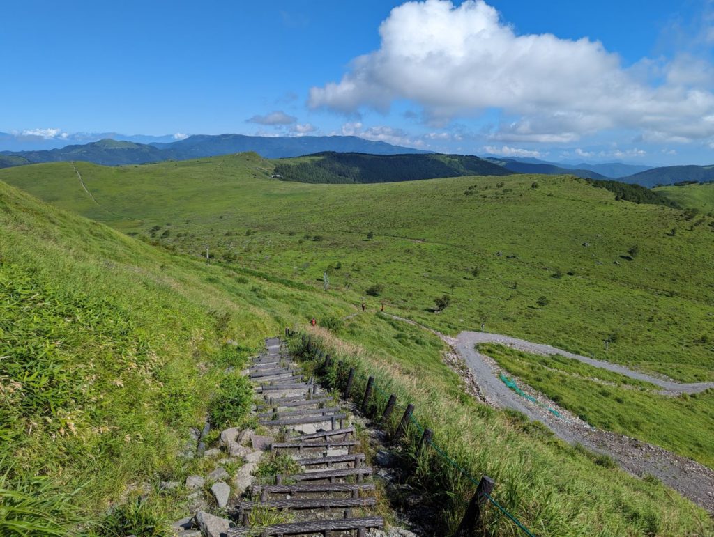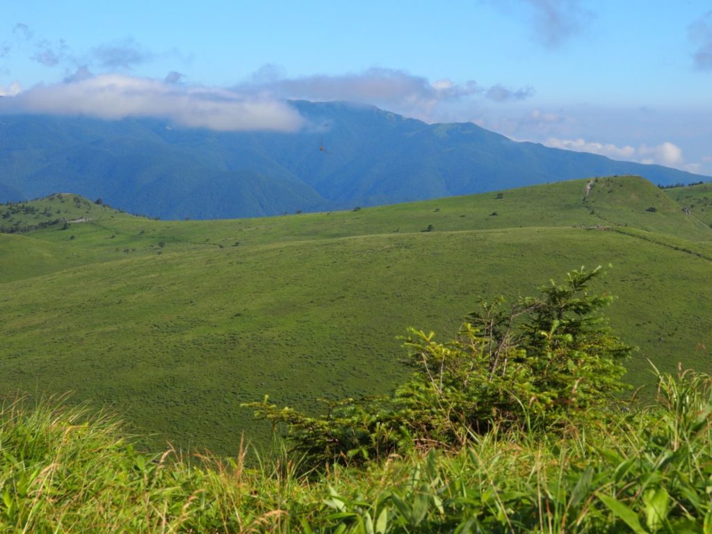 車山肩から登り始めると、周りに広がる美しい黄緑色の草原が目に入ってきて気持ちがあがる。日差しはきついけど涼しい。求めてたのはまさにこれって感じ。