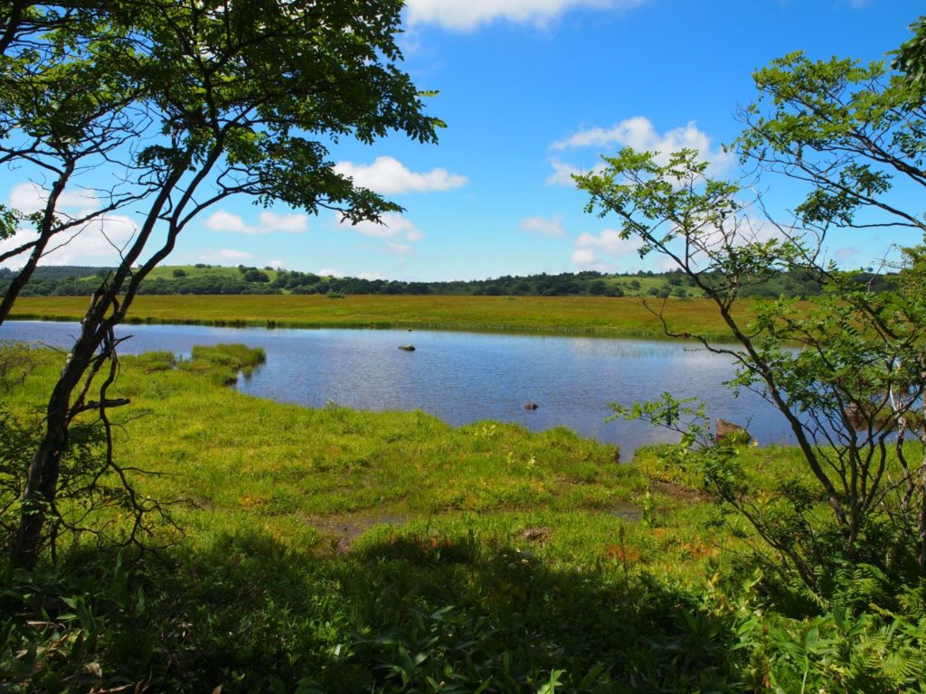 このルートで最初に見える池が鎌ヶ池、いかにも湿原の池という雰囲気。