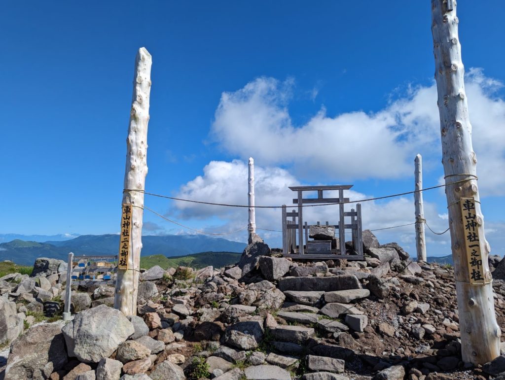 山頂には車山神社もあって、比較的近くにある諏訪神社のように御柱が祀られてた。