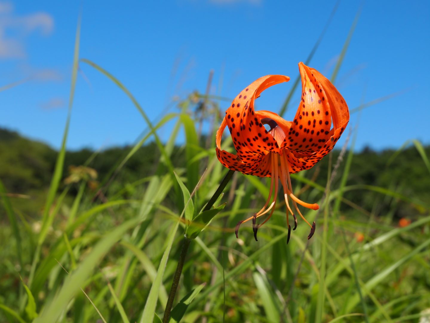 車山乗越から蝶々深山へは草原の中の一本道を進んでいく。所々に高原植物の花々が咲いている。涼しいと思ってたけど、影が全然ないので日差しの強さがちょっと堪えるな。
