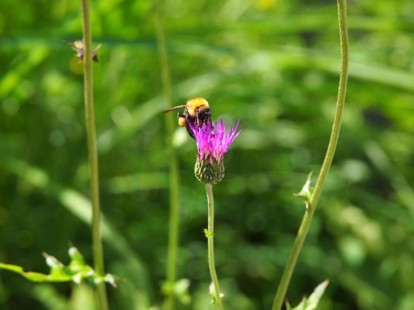 湿原には白・ピンク・黄色・紫の花々が咲き乱れていて、草原の緑、青空、白い雲を背景に本当にとても綺麗だった。それに、所々でアサギマダラが花にとまっていたりするので、思わず足をとめてしまうわけです。