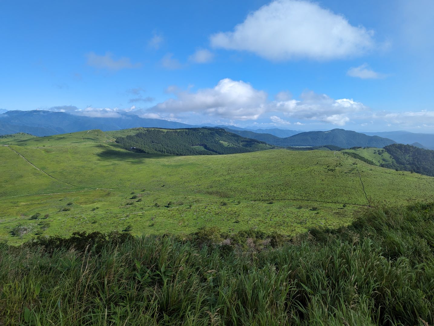 車山肩から登り始めると、周りに広がる美しい黄緑色の草原が目に入ってきて気持ちがあがる。日差しはきついけど涼しい。求めてたのはまさにこれって感じ。