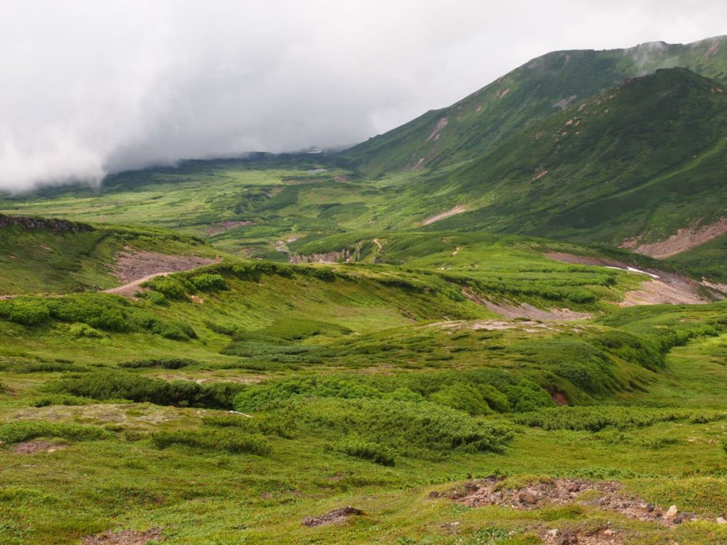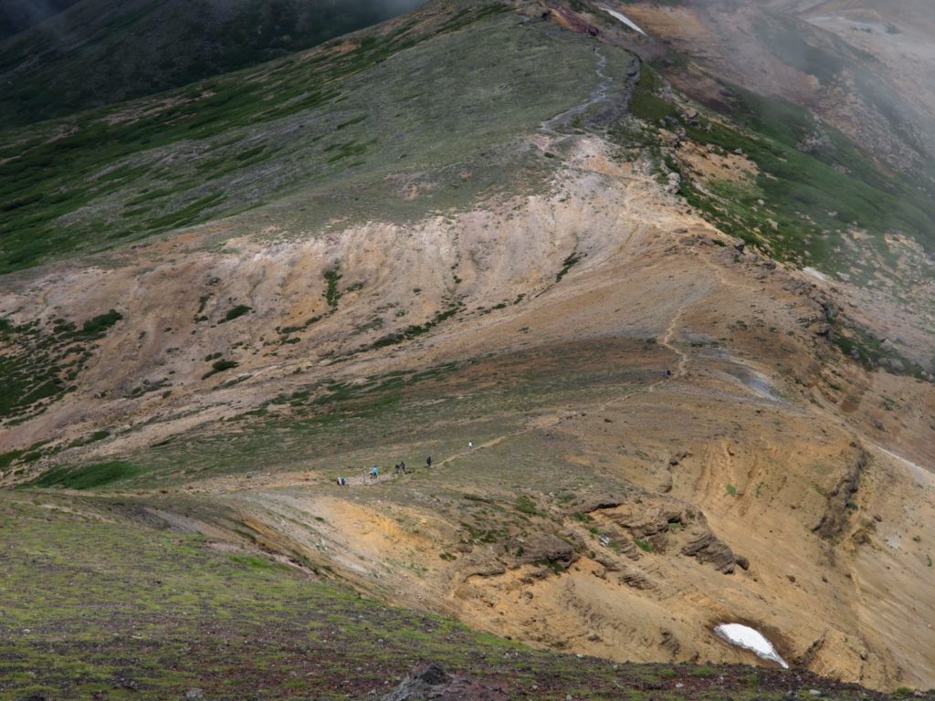 この御鉢平を右手に眺めながら中岳分岐に至る稜線歩きは、北海道の山らしいスケールの大きさで個人的にとても好きな場所。