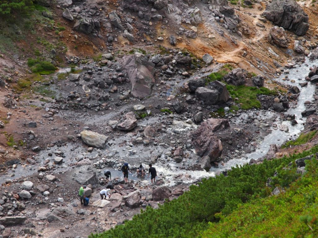 キャンプ指定地にはテントがちらほら。大雪山系を縦走している人たちなのかな、テント泊で何泊かしながら、白雲岳・トムラウシなどを巡れたら楽しいだろうなぁ。