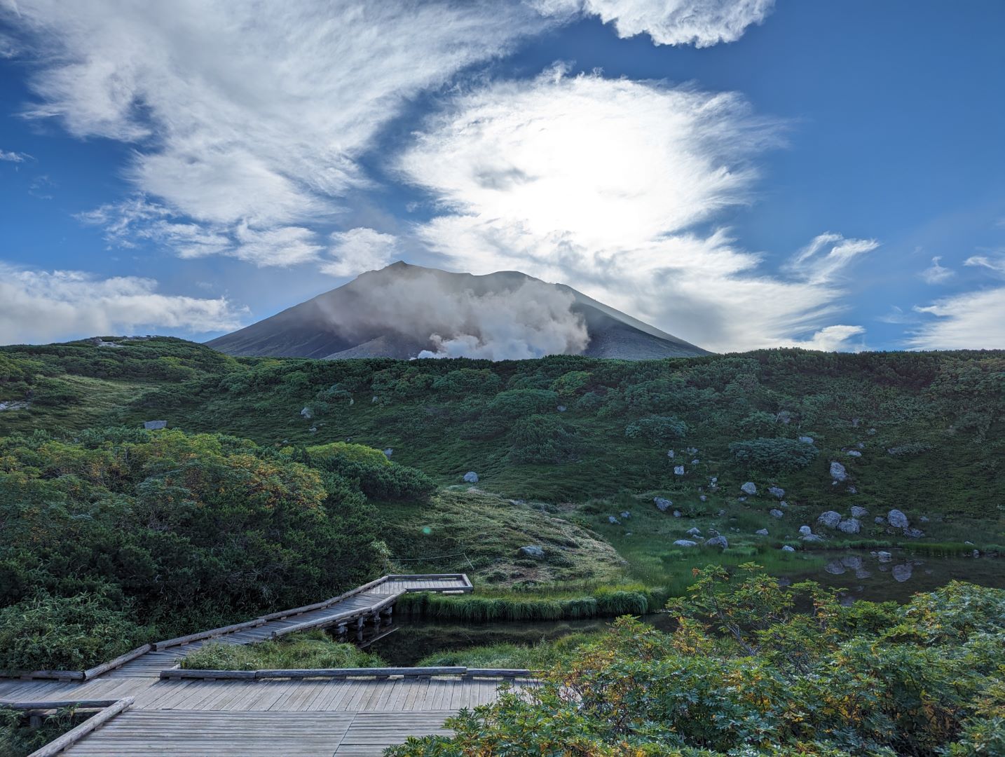 そうこうしているうちに、旭岳が左手に間近に見えるようになり、いよいよこの周遊コースも最終盤。
