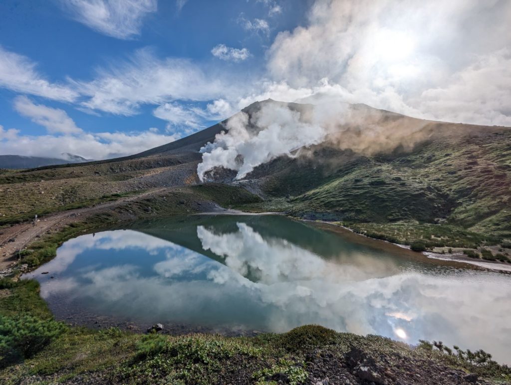 東川町に通い始めてもう7-8年、そんな中で初めて子供を連れて旭岳に登ったのは小学生2年生の時。何度も挫けそうになりながらも、周りの大人達に励まされながら登りきったのをきっかけに、コロナ禍の前までは旭岳登山は毎年夏の恒例行事になっていました。コロナで 2年間行けなかった間に、部活動で体力もついてもう余裕だよということと、前年夏に望岳台から十勝岳への往復で7時間程度の登山をこなしたこともあって、これまで旭岳へのピストン往復のみだったのを、コースタイム 7時間強の以下の周遊コースで大雪山系をもう少し楽しんでみようということに。