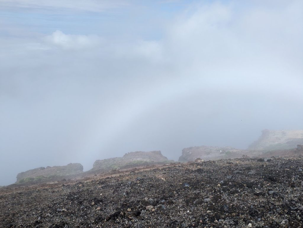白い虹(霧虹)です、自分は初めて目にしました。ほんの一瞬しか現れなかったのですが、子供にも声をかけて子供も目にすることができて良かったです。