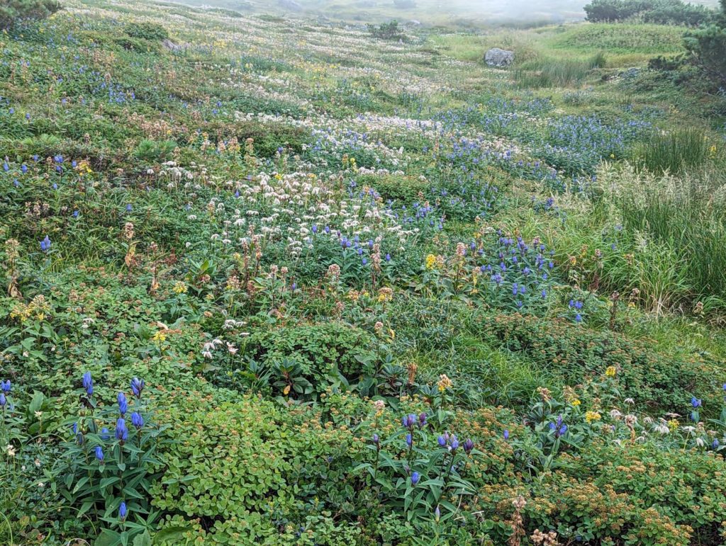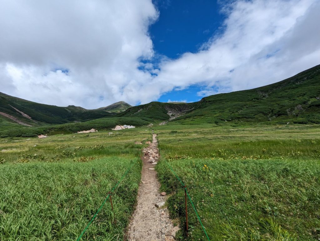 湿原のような裾合平には池塘があったり、周りを取り囲む山々の景色や、時期は終わってしまっているけど綿毛になっているチングルマが一面に広がっている様など、飽きることは全く無い道。