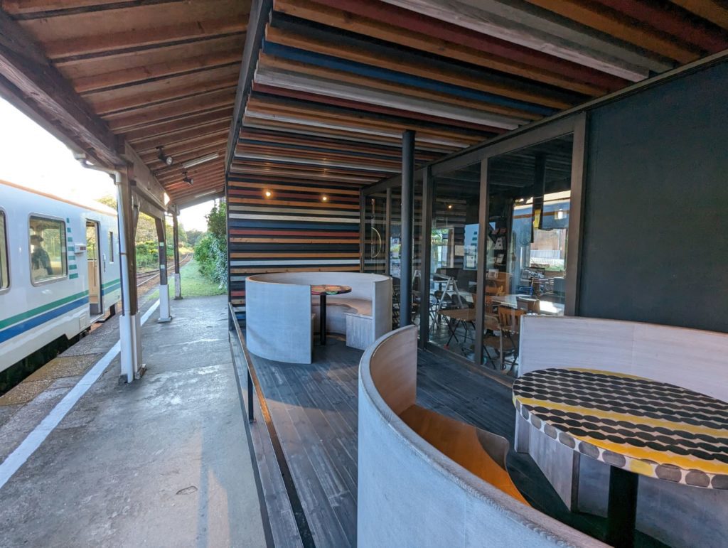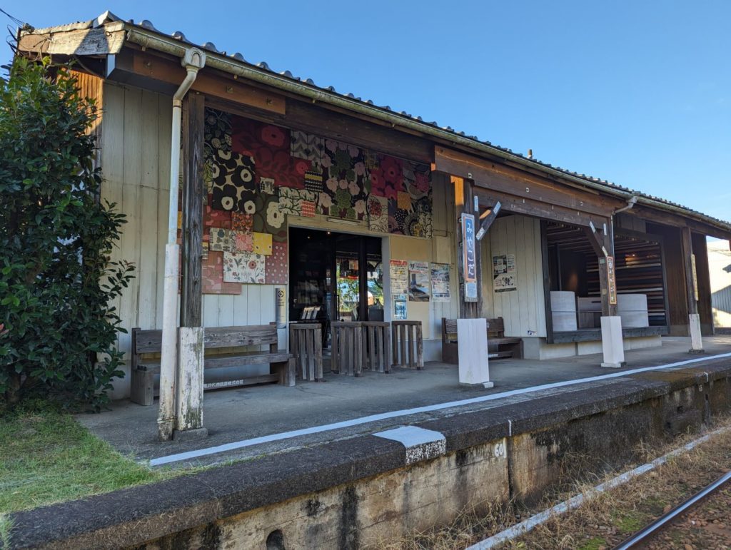 ホーム側もしっかりマリメッコのファブリックパネルで装飾されてます。古い駅舎をうまく活かす形でリノベーションが行われていてとてもいい雰囲気。天浜線の駅舎の多くは古くても、どの駅舎にも独特の風情・雰囲気があって一駅一駅訪問するのが本当に楽しくておすすめ。