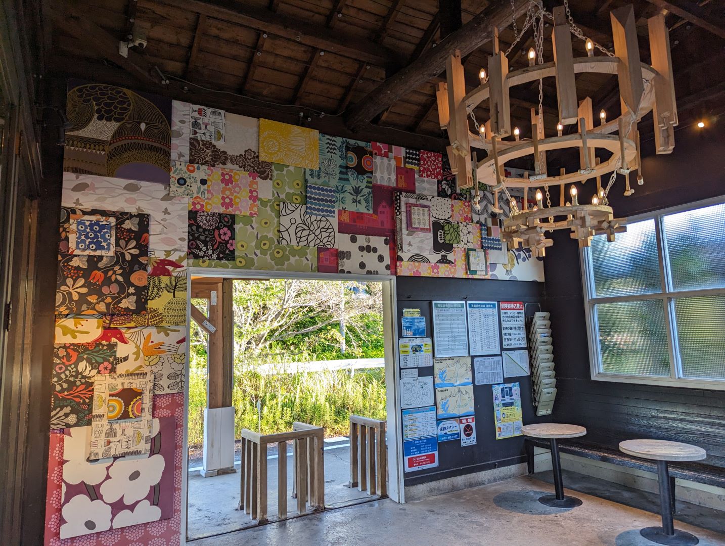 ホーム側もしっかりマリメッコのファブリックパネルで装飾されてます。古い駅舎をうまく活かす形でリノベーションが行われていてとてもいい雰囲気。天浜線の駅舎の多くは古くても、どの駅舎にも独特の風情・雰囲気があって一駅一駅訪問するのが本当に楽しくておすすめ。