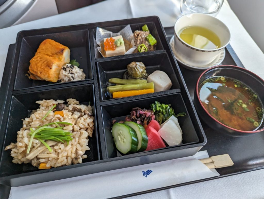 食事は ANA に乗るときの癖で、何も考えずに和食をお願いしてしまったのですが、普通に美味しかった。日本発の便であることもあるとは思うのですが、海外のエアラインで普通にこんな和食が食べられるのはありがたい限り。