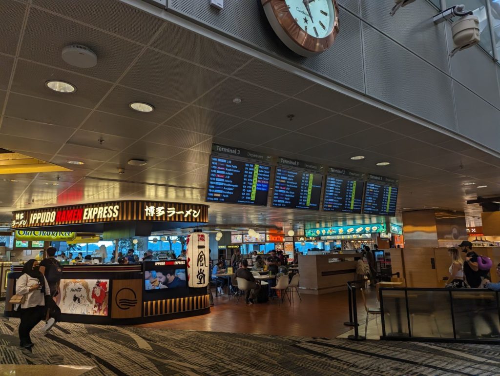 利便性に加えて、広大な飛行場では様々な店舗やレストランが入っていて、24時間営業の場所が多く、仮にトランジットで待たされても、楽しく時間を潰せそうな雰囲気。