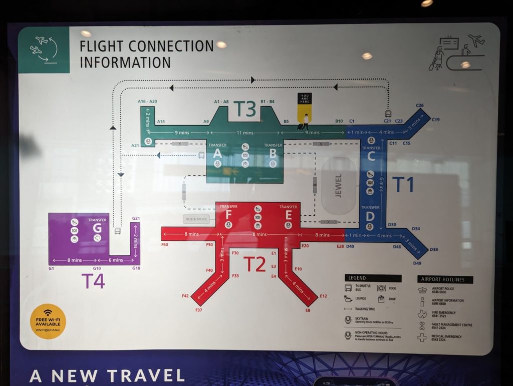 ただ機内での体験よりも正直驚いたのがシンガポールのチャンギ空港。コの字型の空港は非常に広いものの、基本的には歩いて行き来ができるように設計されていて、その際にどこにもセキュリティチェックのようなものが無いので、わかりやすいし行き来がしやすく驚きました。もちろん、ターミナル間にはシャトルが走っているので、必要に応じてそれに乗れば行き来の時間は全く問題なし。