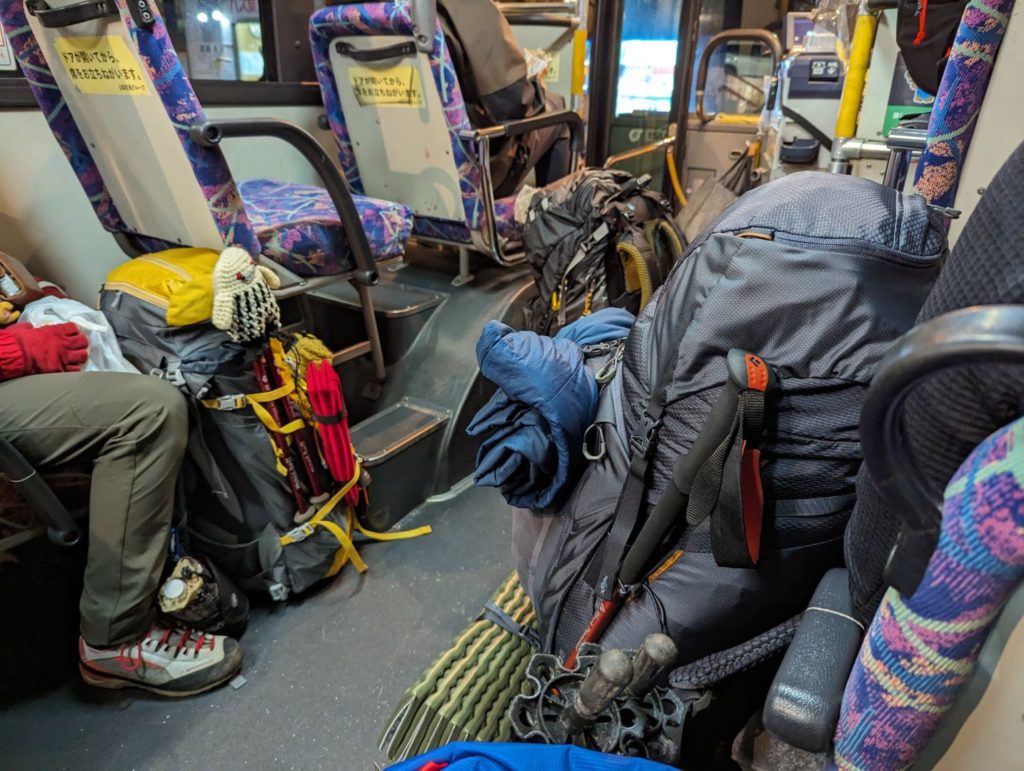 出かける時に情報が取り切れなかったのが雪の状況。肩の小屋のブログでだいぶ雪が積もっているという投稿があったこともあって、念のためとアイゼンとピッケルを持ってきたけど、状況的には明らかにチェーンスパイクで十分…雪があるからアイゼンをつけたけど正直歩きにくいし、ピッケルも不要…失敗した。