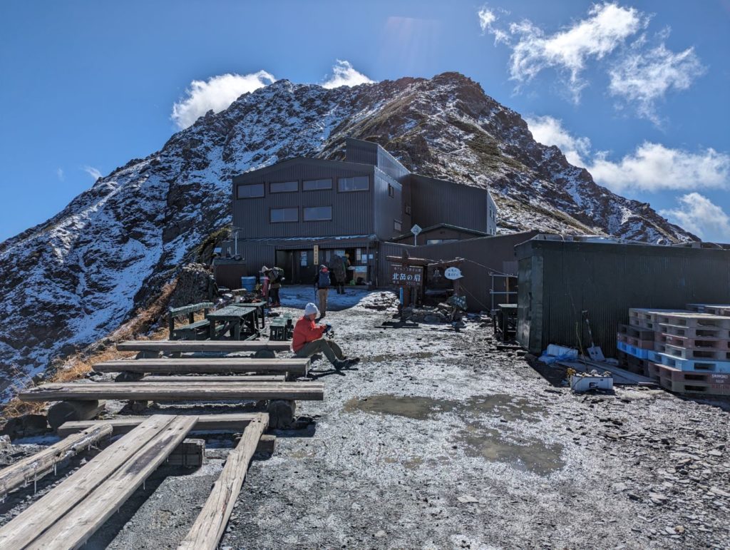 へろへろになりながら、やっとのことで到着。強風には参ったけど、それでも雨や雪にならなくて本当に良かった。こんな凄い場所に山小屋があって宿泊できるっていうのは本当にありがたい限り。
