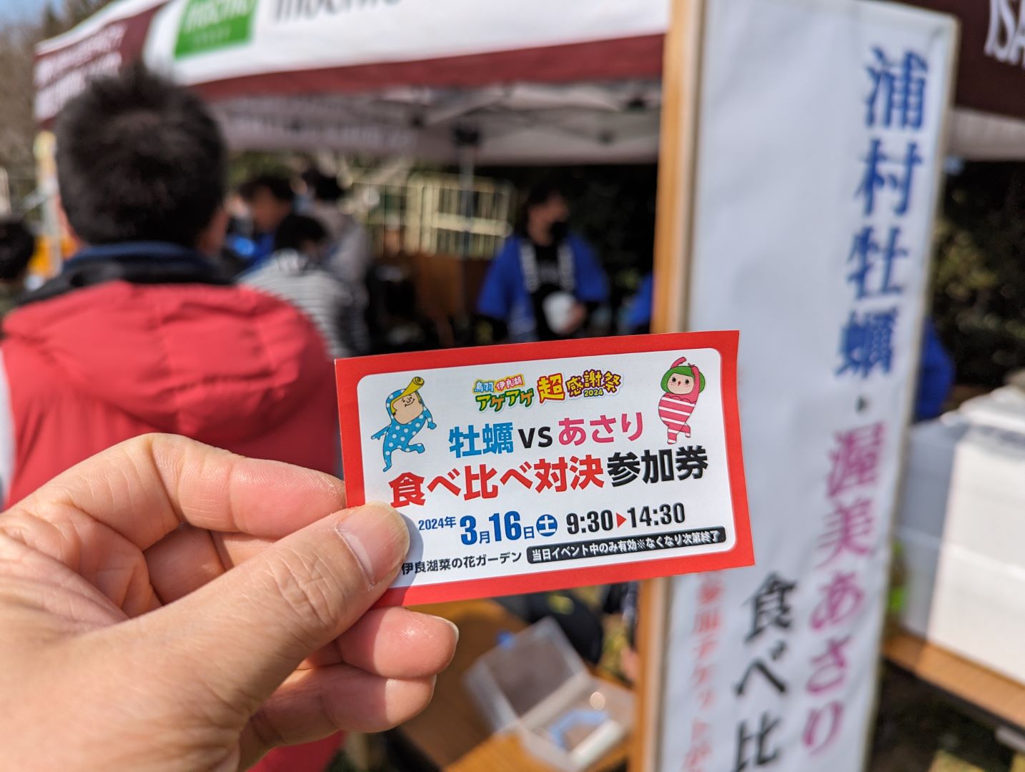 この日はイベントで牡蠣とあさりの食べ比べ対決をやっていて、朝早くに到着していたこともあって難なく参加できました。どっちも美味しかったけど、個人的には牡蠣の勝利ということで牡蠣に投票。結局どっちが勝ったのかわからないけど、まぁ牡蠣だろうね。