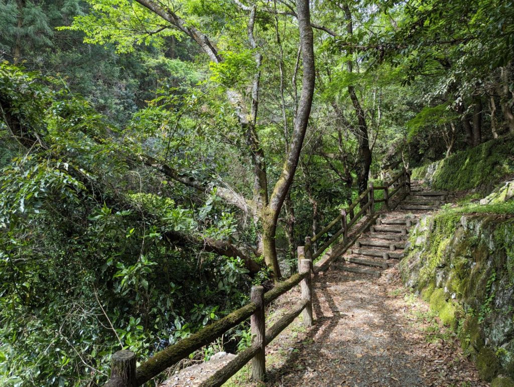 小さな駐車場から滝までは10分もしないくらいの遊歩道。でも、鬱蒼とした森の中を進む感じでひんやりとして一人だとちょっと背中がぞわぞわっとする雰囲気。