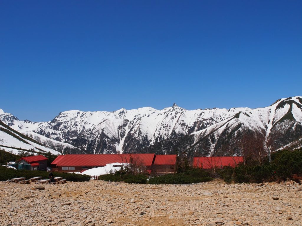 常念小屋にはお昼前に到着、外にあるテーブルで一休みしていると、この後どうします?みたいな会話に。疲れ切ったので、もうここで今日は終わり休みますという人もいれば、よく見ると一の沢から登ってくる時に会話した人たちは、すでに常念岳登って戻ってきましたという人もいて、皆ペースはそれぞれだなと。