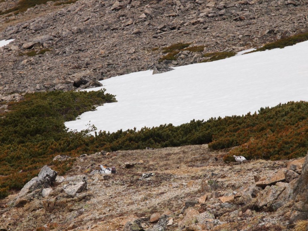 危なっかしい岩場だったので、近づくことはできませんでしたが、それでも比較的近くで雷鳥を見ることができてラッキー。