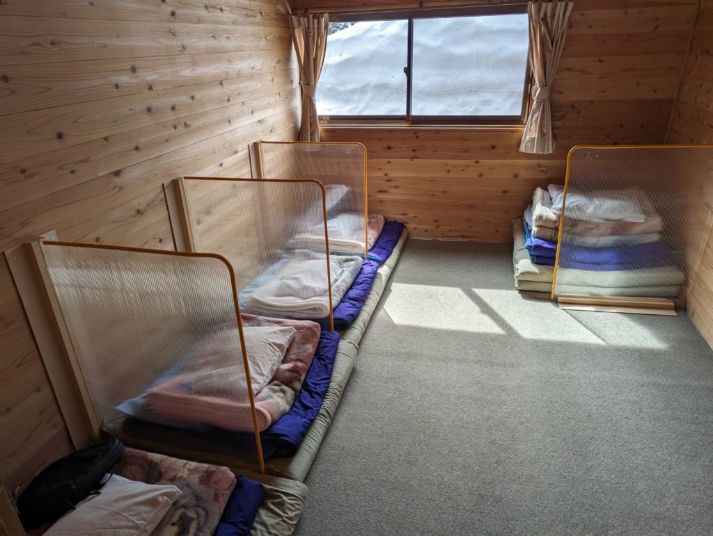 燕山荘はかなり大きな山小屋で、この日は第一別館の 1F の下の部屋の一つを一人で使わせていただきました。おそらく夏の混雑する時期だと、一部屋あたり 3-4人が寝るような形でだいぶぎゅうぎゅうになりそう。