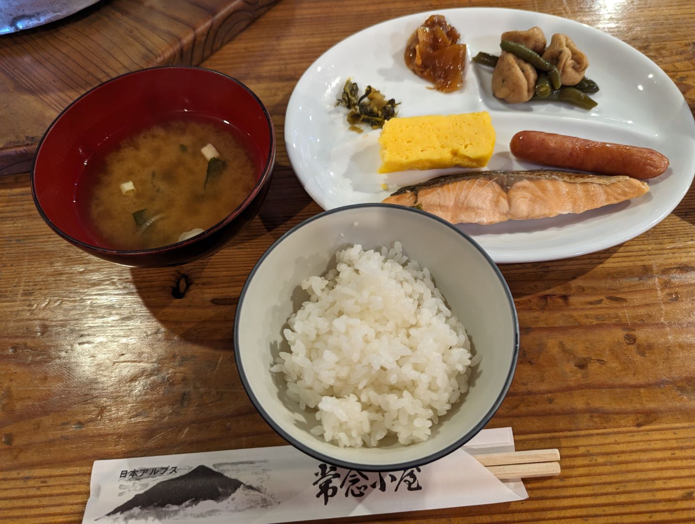 普段は早朝に起きたりするとご飯は食べられないことが多いけど、山小屋だと不思議とぺろっといけてしまう。というか食べないとガス欠になって動けなくなるので、食べるのはとても大事。