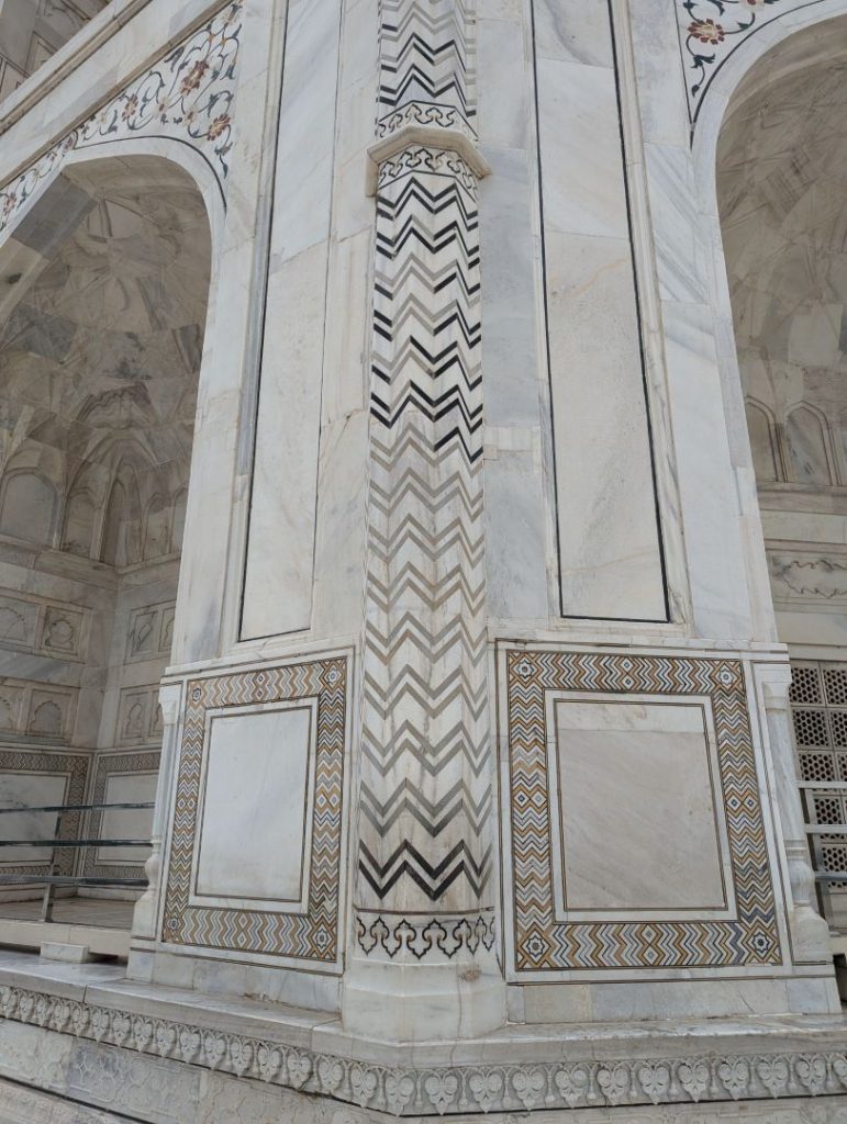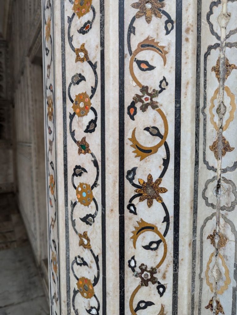 建物には様々な装飾が施されていて、その一つ一つがとても丁寧で美しく、これを建てたムガル帝国第5代皇帝シャー・ジャハーンがその妃のためにという想いが伝わってくるような感じすらする。