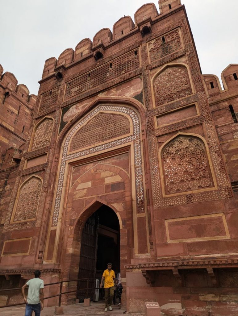 写真で知っているタージ・マハルは相当な大きさだと思うのだけれど、既に敷地内に入っているというのに一向にあの白い大理石の建物はちらりとすら姿が見えないのが不思議。写真の左右の建物の美しいアーチは、中央アジアのティムール朝の建築様式を受け継ぐもので、インドが様々な文化から影響を受けていることがよく分かる。