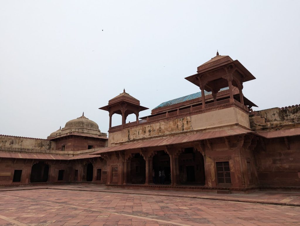 ファテープル・シークリーは、アーグラー中心部から約40キロ離れた郊外にあるアクバル帝が造った城跡。壮大な建築群が作られたにもかかわらず、たった14年でその役割を終えたため、多くの建物があまり使われることもなく美しく残っているのがここファテープル・シークリー。