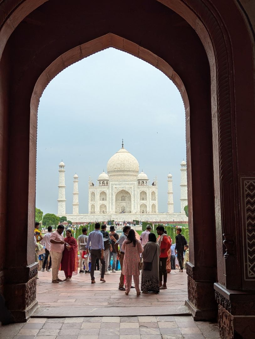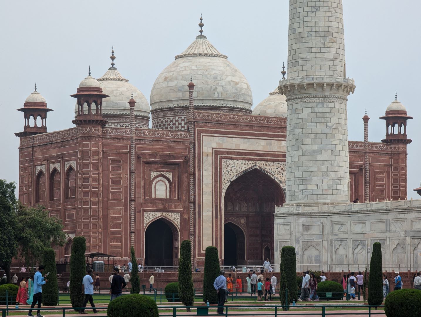 写真で知っているタージ・マハルは相当な大きさだと思うのだけれど、既に敷地内に入っているというのに一向にあの白い大理石の建物はちらりとすら姿が見えないのが不思議。写真の左右の建物の美しいアーチは、中央アジアのティムール朝の建築様式を受け継ぐもので、インドが様々な文化から影響を受けていることがよく分かる。
