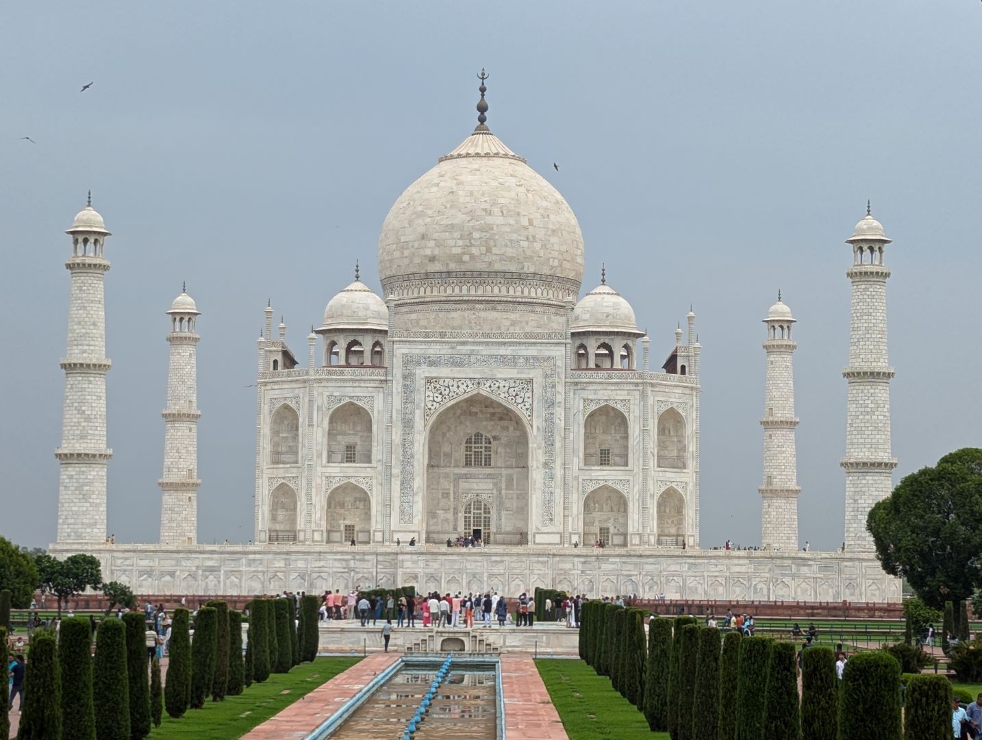 この正門をくぐると初めて真っ白で荘厳なタージ・マハルが初めて見えてくるのですが、この瞬間はまさに鳥肌モノでした。距離感が全く狂ってしまうとても不思議な感じです。