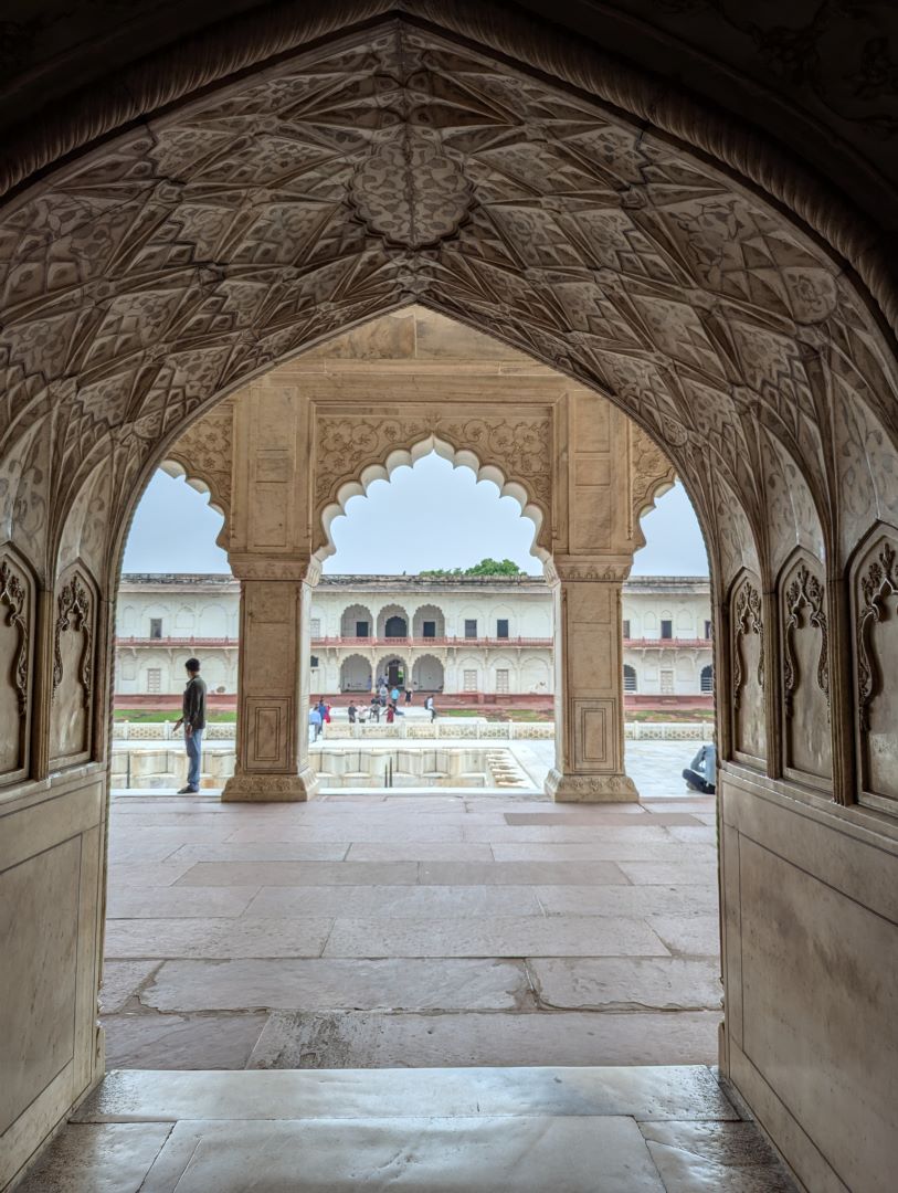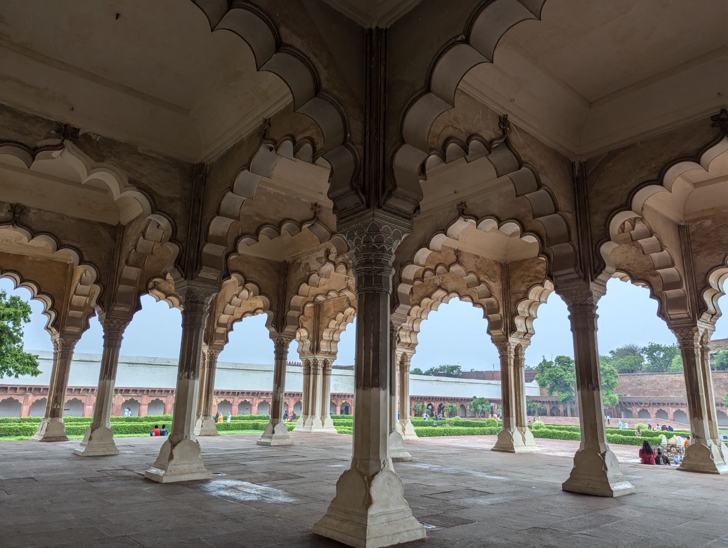 タージ・マハル、アーグラー城もそうだったように緑が美しい中庭がある回廊で囲まれた場所に一般謁見の間があり、当時の一般民衆はここで皇帝と謁見したのだそう。