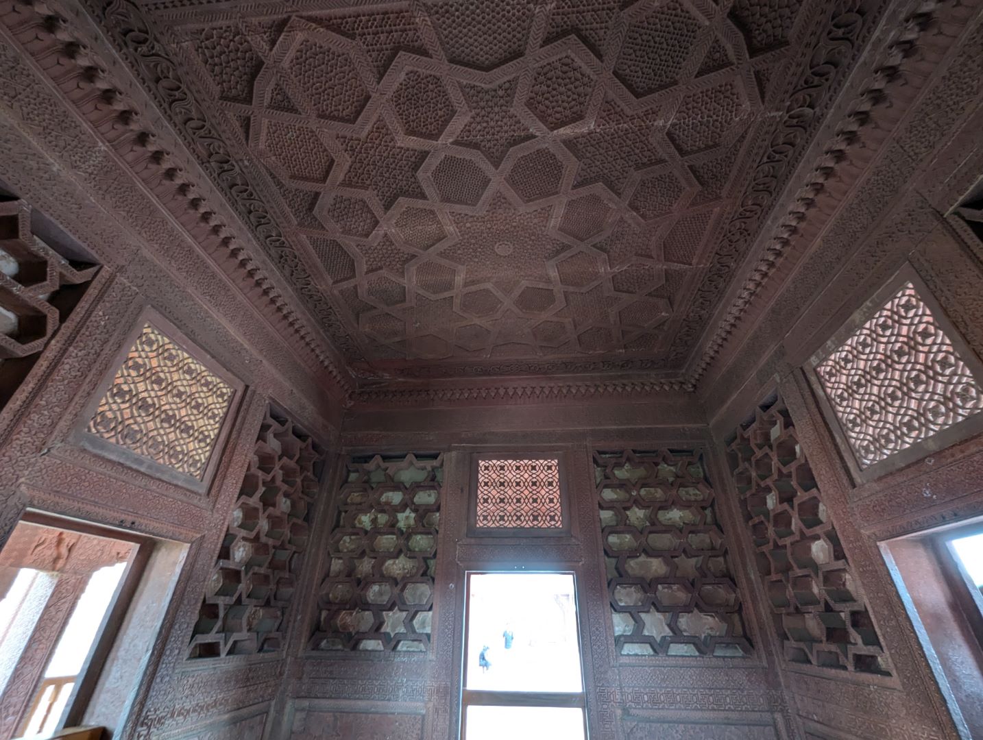 自分以外の兄弟に権限が渡されることを危惧した三男が、兄弟を殺害し親であるシャー・ジャハーンを幽閉したのがここ。シャー・ジャハーンは愛する妃が眠るタージ・マハルを遠くに眺めながら8年幽閉されて 74歳で息を引き取ったのだそう。