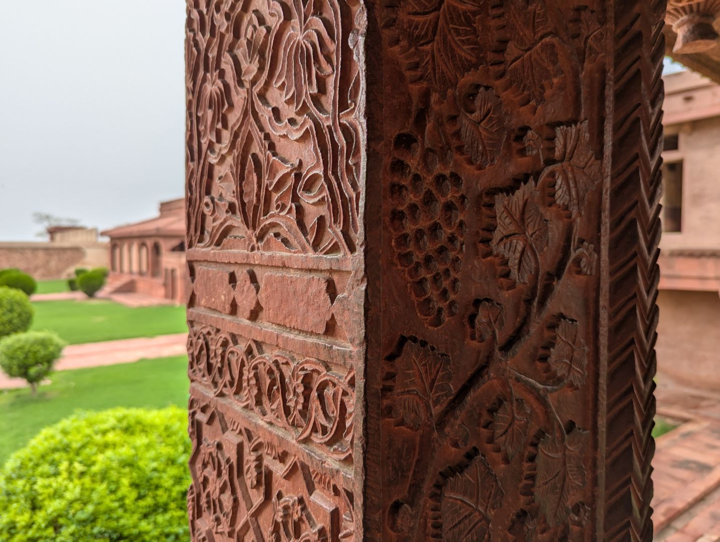 敷地内のどの建物であったかは忘れてしまったけれど、非常に精緻な彫刻や透かし彫りが施された部屋があったのがとても印象的で、この建物を囲む柱にはぶどうを始め、様々な果物等の彫刻も施されていて強く印象に残っています。