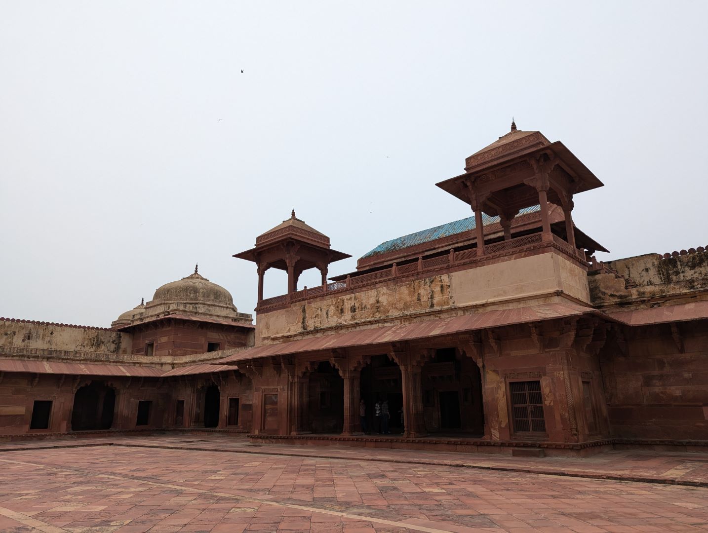 一般謁見の間から様々な建物がある敷地に入り込むとまず目をみはるのが、この列状の柱で支えられた五層の建物 パンチ・マハル。良くこんな建物がしっかりと残っているものだと感心するような構造。下層の柱のデザインはすべて異なるなど、かなり凝ったデザインの建物という印象。