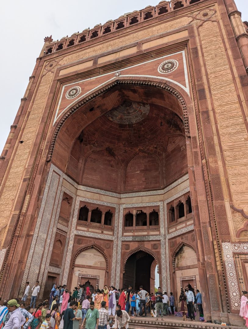 宮廷地区からの直接の入口では無いが、広大なモスク地区への入口になっているのがブランド門。54メートルもの高さのある門で赤砂岩に白い大理石がはめ込まれた構造になっていて堂々としつつも非常に美しい門。モスク地区なので、観光客も含めて裸足。