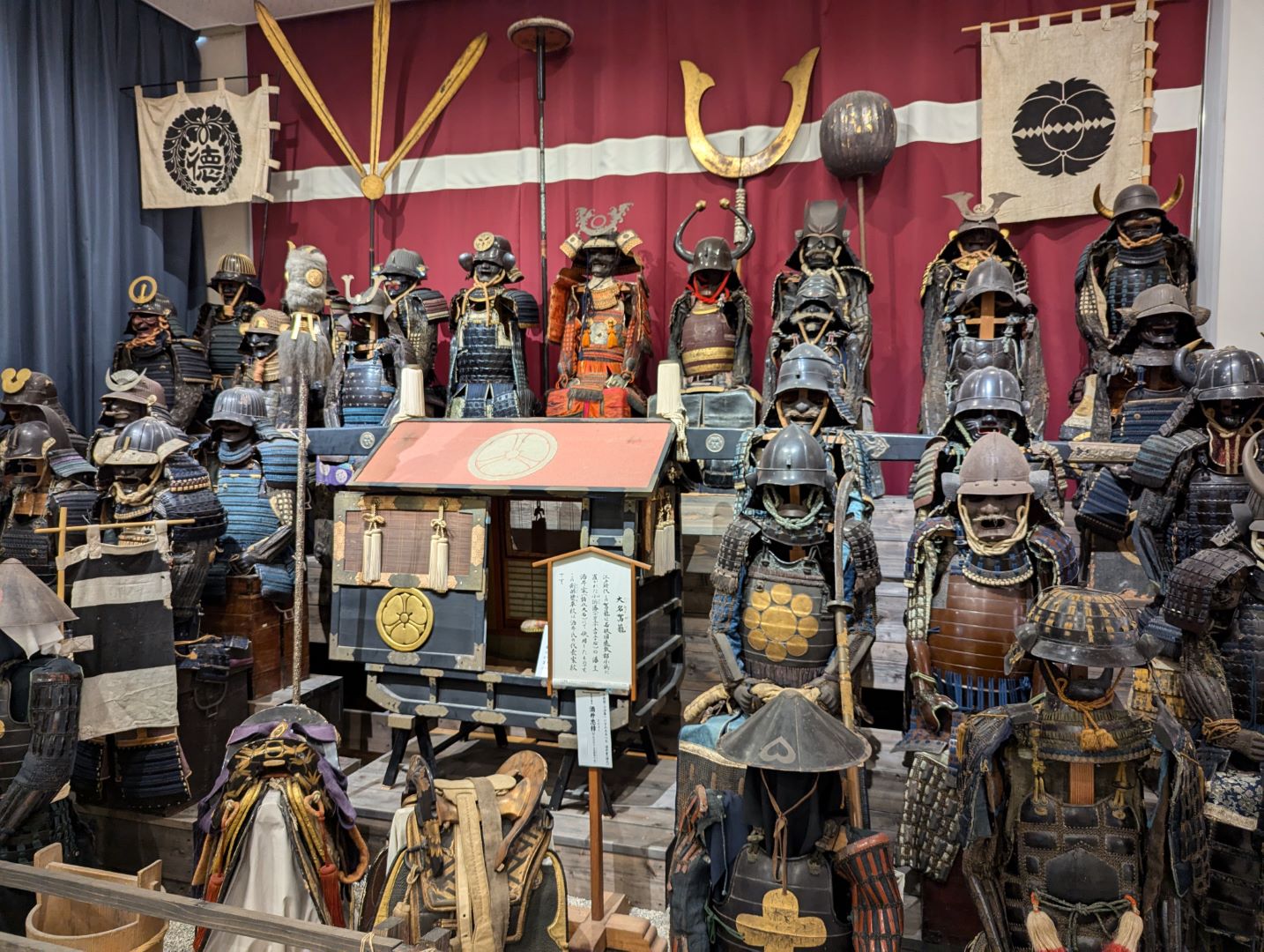 写真には収めていないのですが、この2枚の写真は入口付近に展示された鎧の数々ですが、びっくりするほどの数の鎧や兜が展示されていて、正直あまり期待していなかったこともあってビックリ。