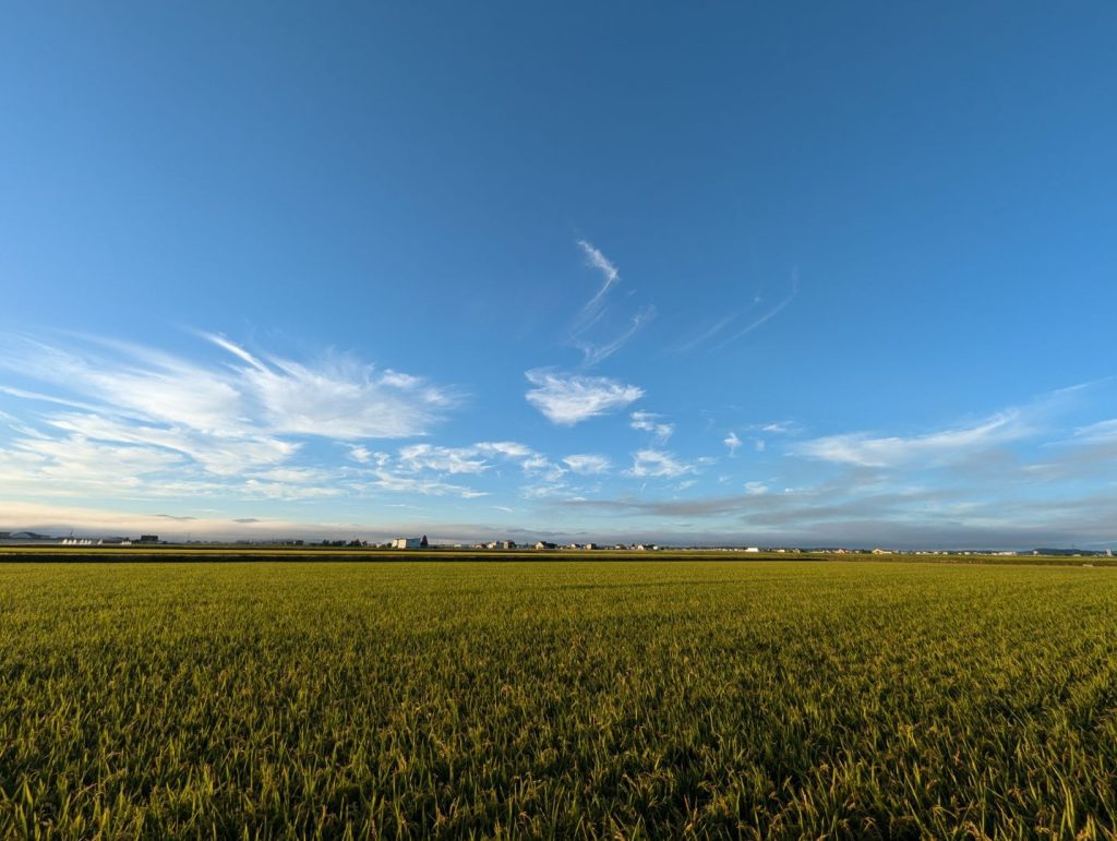東川町は夏に写真甲子園が開かれるような場所で、街なかでも田んぼと大雪山の景色が美しい場所なのですが、東川ペリカンはそんな田んぼの真ん中にぽつんとあって、部屋の中からも外に出てもその雄大な景色を満喫できます。
