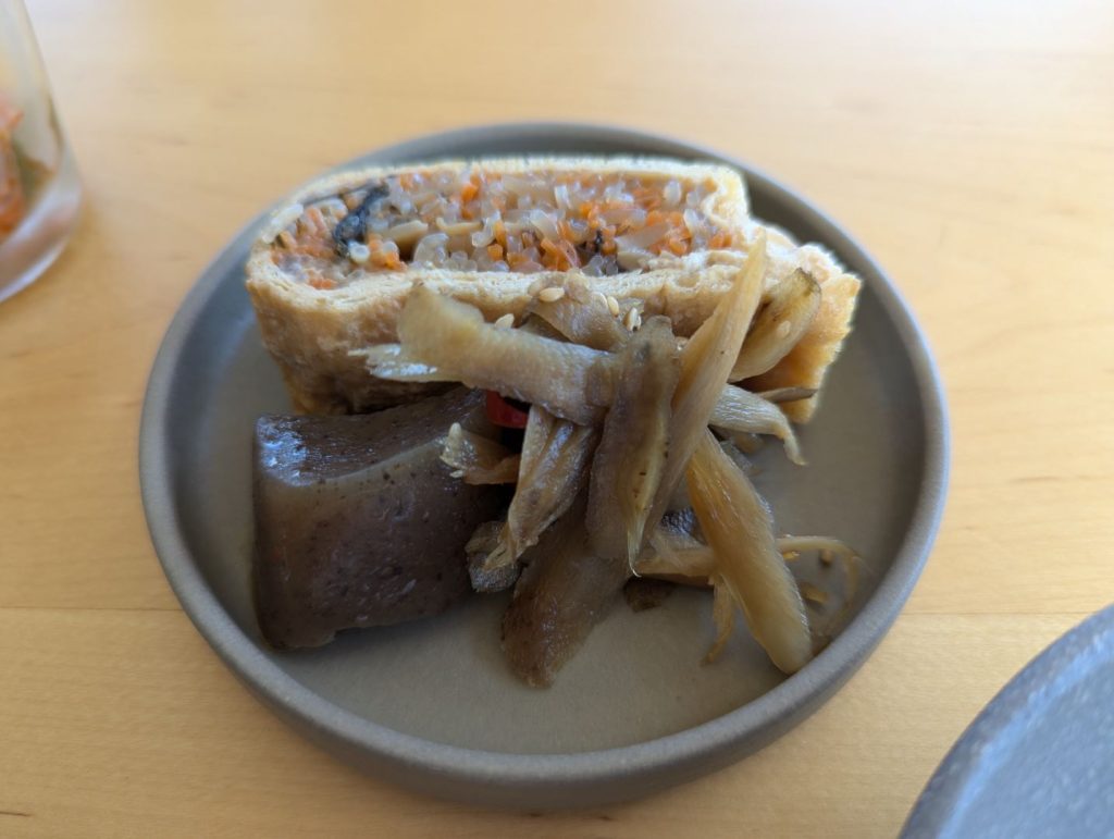北海道の八角という魚の焼き魚を中心に、地元の野菜がたっぷり使われた朝食もとても美味しくて、地元の平田豆腐店の湯豆腐を北海道を含む様々な地域のお醤油で頂いたり、炊きたての東川米もまた美味しくて、朝から食べすぎ…特に素材の味を活かすように調理された野菜の味がとてもしっかり感じられたのが最高でした。