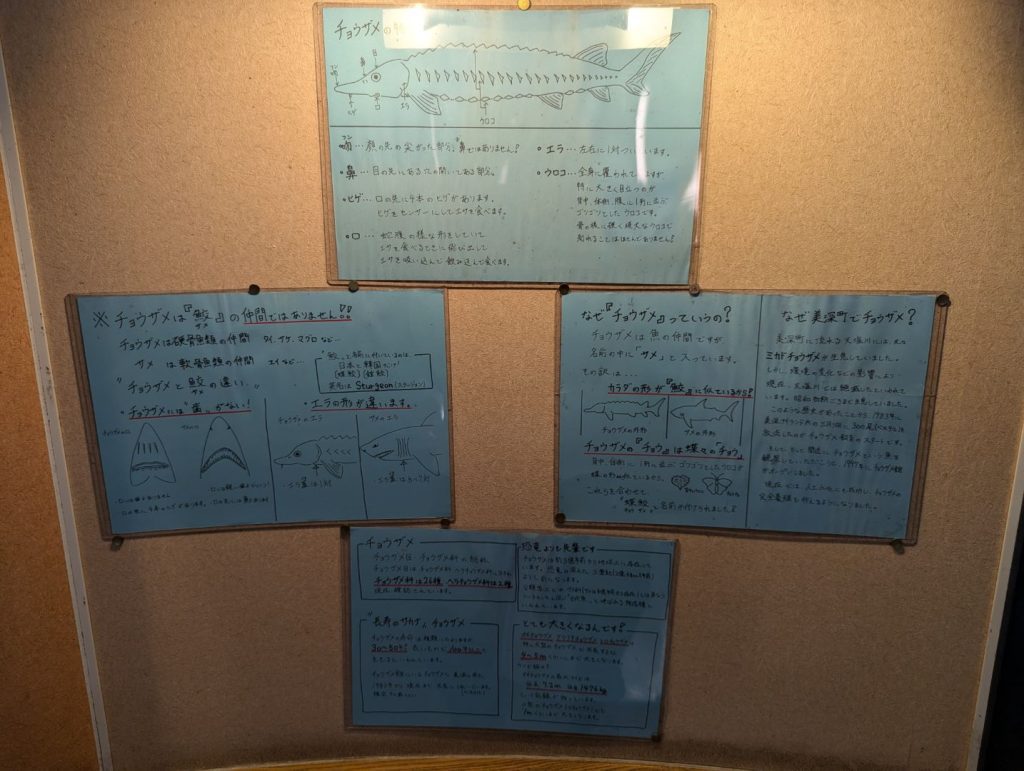 館内ではチョウザメに餌を与えることもできたり、いろいろな種類のチョウザメを見ることができるのですが、そもそもチョウザメって鮫では無いとか、種類として 28種類もいるとか結構知らないことがあって勉強になりました。それに、チョウザメは抱卵するまでに10年もかかるし、さらに一度採卵すると二度と卵を持つことがないなんてことも知りませんでした(だから、あんなに高価なんですね…)。今回はタイミングも合わなかったので食さなかったのだけれど、近くにある美深温泉ではチョウザメの料理もいただけるそうで、機会があればぜひ食べてみたいなと。