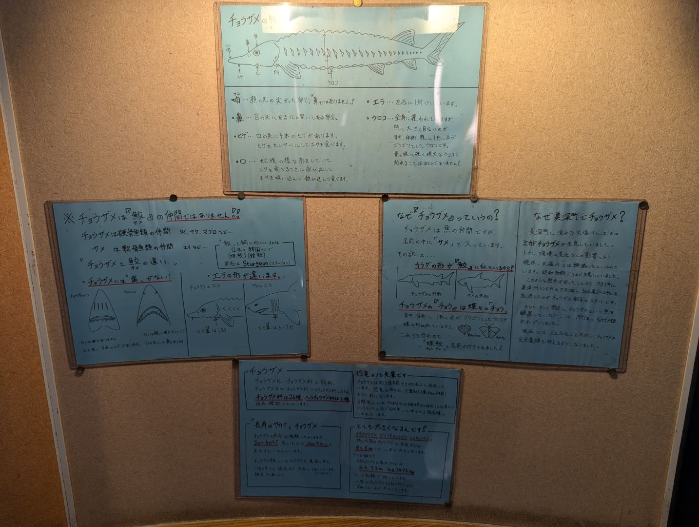 館内ではチョウザメに餌を与えることもできたり、いろいろな種類のチョウザメを見ることができるのですが、そもそもチョウザメって鮫では無いとか、種類として 28種類もいるとか結構知らないことがあって勉強になりました。それに、チョウザメは抱卵するまでに10年もかかるし、さらに一度採卵すると二度と卵を持つことがないなんてことも知りませんでした(だから、あんなに高価なんですね…)。今回はタイミングも合わなかったので食さなかったのだけれど、近くにある美深温泉ではチョウザメの料理もいただけるそうで、機会があればぜひ食べてみたいなと。
