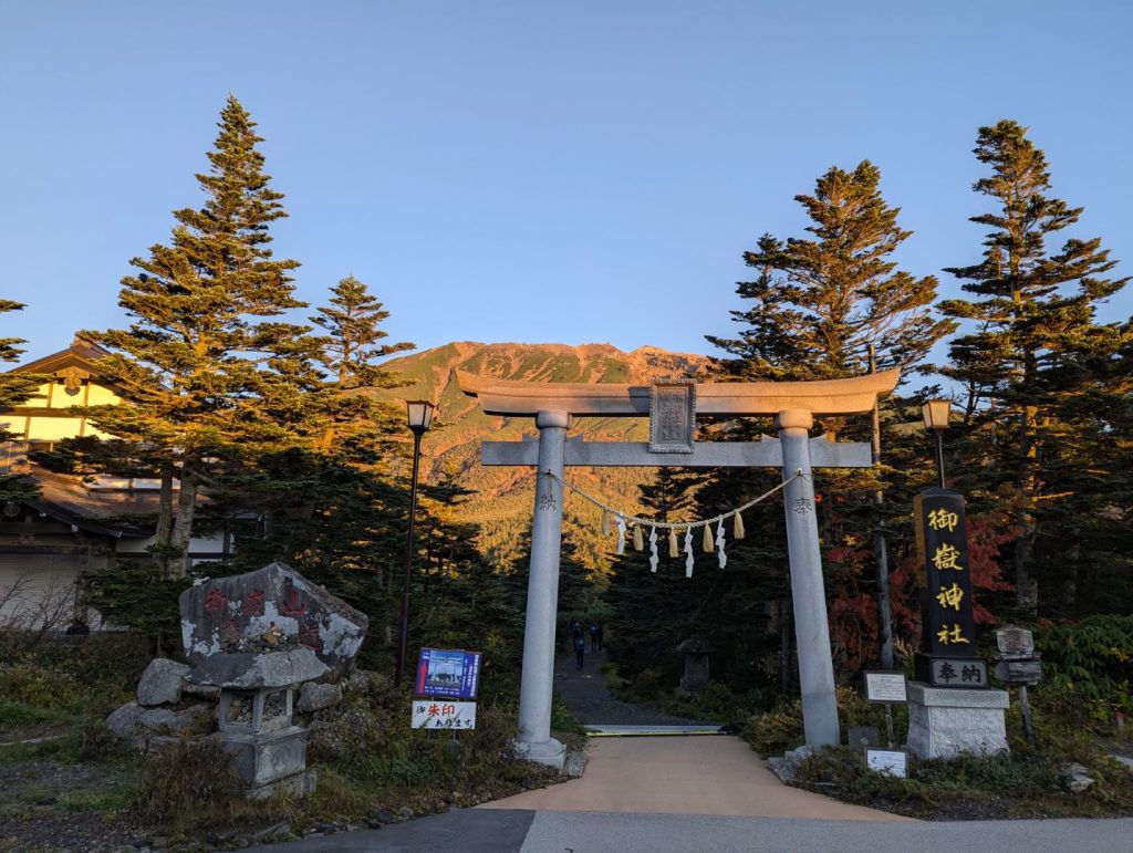 御嶽山は、富士山、白山と並ぶ日本三大霊峰の一つということもあって、山頂の御嶽神社奥社は今も信仰の山として親しまれているのだそうで、登山口からしてその雰囲気が漂ってます。