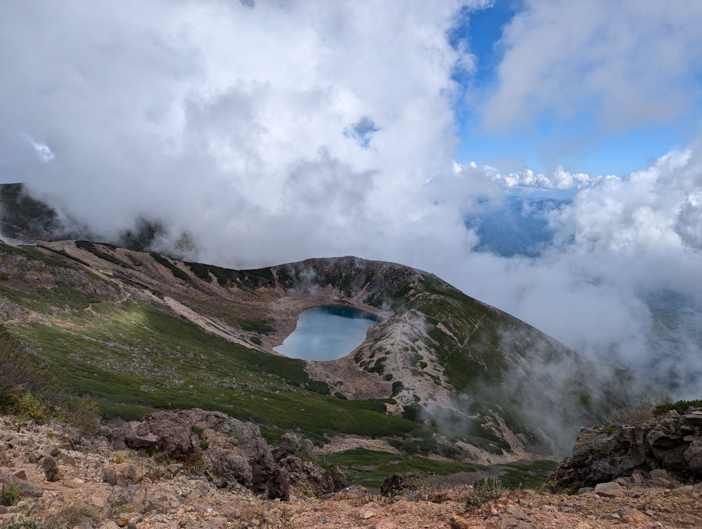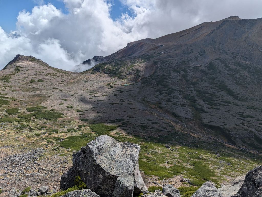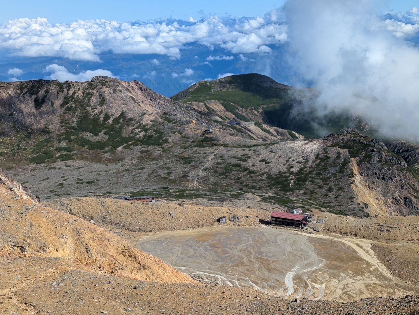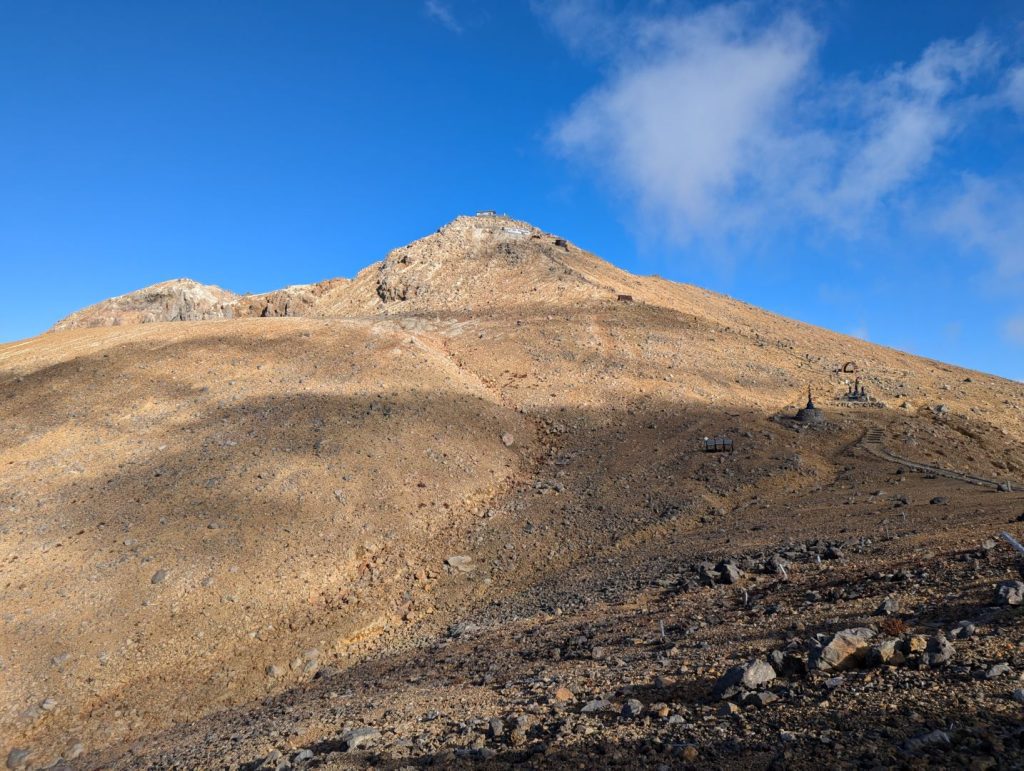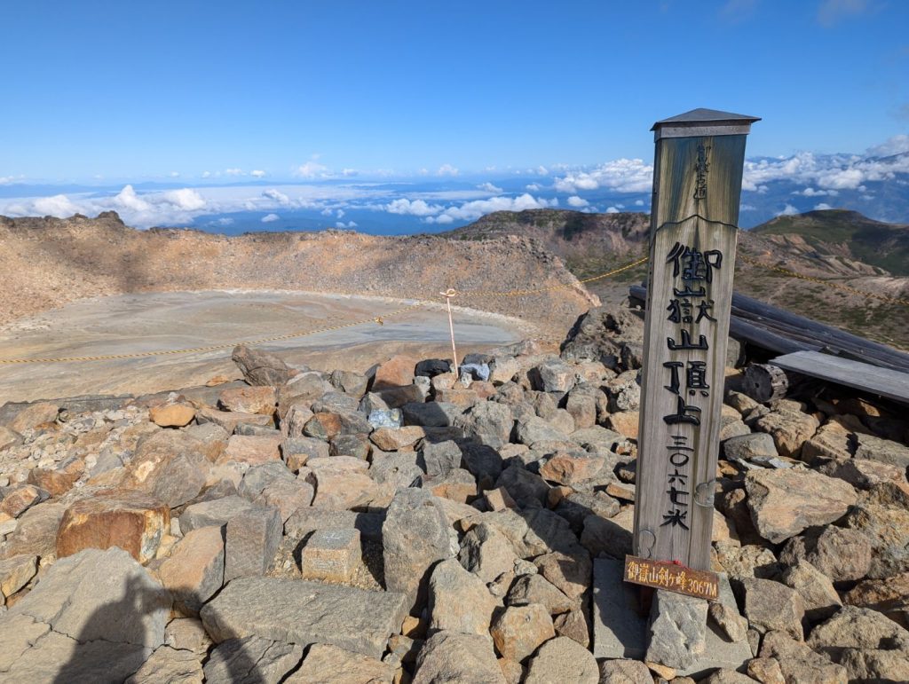 御嶽山は 3067メートルの高さがありつつも、周りの他の高峰がない独立峰ということもあって、山頂からの眺めは素晴らしかったです。ただ、おそらく噴火によって一変してしまったと思われるのが二ノ池で、以前あったエメラルドグリーンの池は完全に消滅してしまっているようでした。