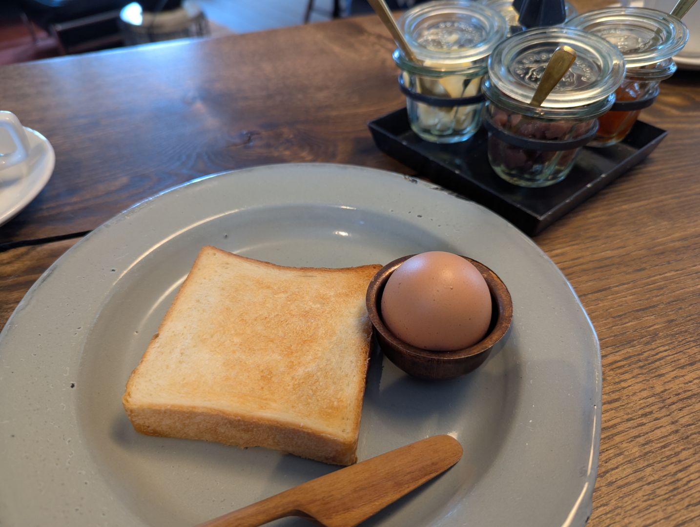 朝食のトーストいただきながら、色々と店主の方とお話。関東圏から移住されてこのカフェ兼パン屋さんを開かれていること、相当にアウトドア派でかなりアクティブにスキーや登山をされていること、また冬場はお客さんが少なくて、ビジネスとしてはなかなか安定はしない難しさがあること、世界中を旅する中で目にした朝食を外でのんびり食べる文化を旭川にも広めたいことなど色々とお聞きしました。面白いなと思ったのは、旭川の方は近くの美しい自然があるけど、意外と登山やスキーをしないこと、朝食を外食でという文化をと考えていても、このあたりの皆さんの冬は朝起きて真っ先に雪かきをしなければならず、なかなかゆっくりとというわけにもいかないよねとか、そんな話をしながら過ごさせていただきました。
