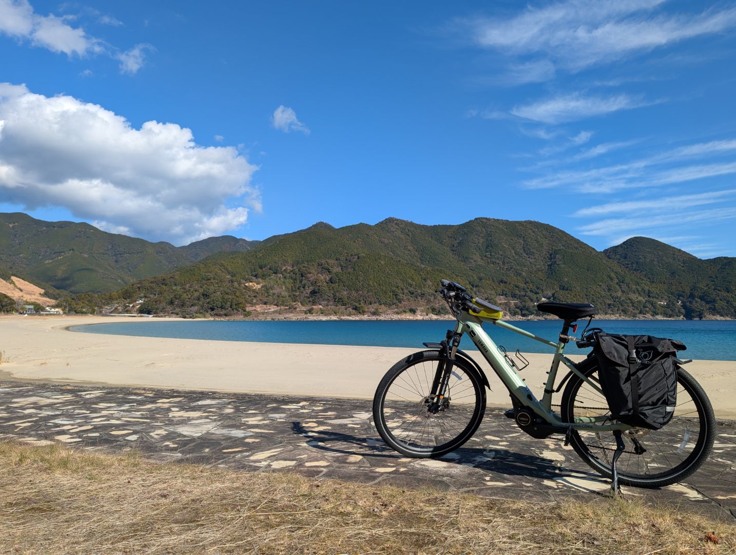 アップダウンのある海岸沿いの道の景色は本当に美しく、eBike を持ってきたことが心底嬉しくなりました。車で走るにはちょっと面倒だなという細い道で、また eBike なのでアップダウンも割と楽ちん。また、走ってみて初めて知ったのですが、この近辺には熊野古道の巡礼の道もあるようで、いつか歩いてみたいと思いを新たにしました。