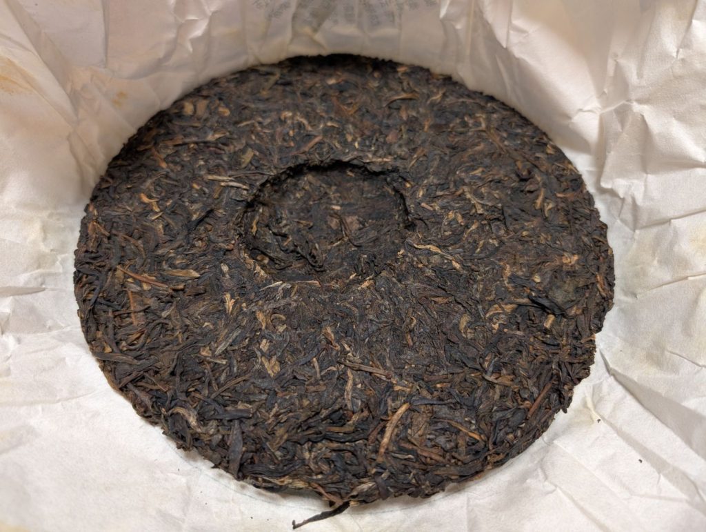 中国に旅行をしたときにも、確かこういう大きなお茶が売っていたのは覚えていたのですが、これがどういうものかを全く知りませんでした。今回お土産としていただいて、調べて初めて知ったのですが、このように固く円盤状に加工されたものを餅茶というそうで、圧縮していることもあって酸素に触れにくく熟成させながら楽しむこともできるみたいです。